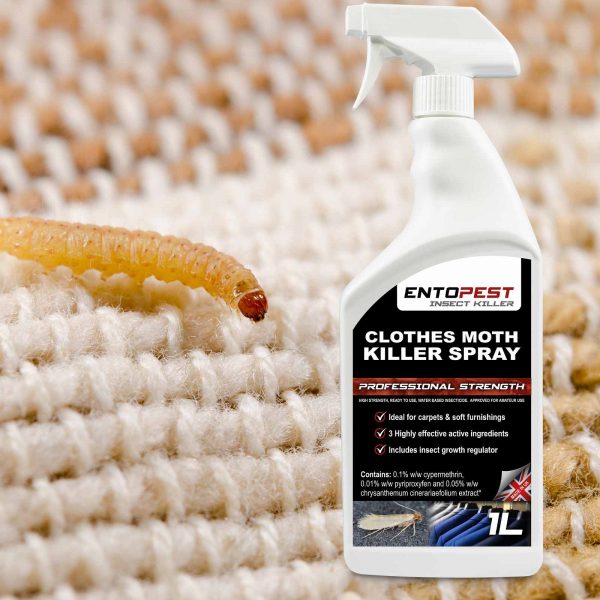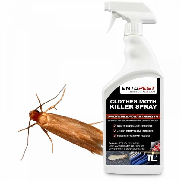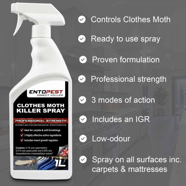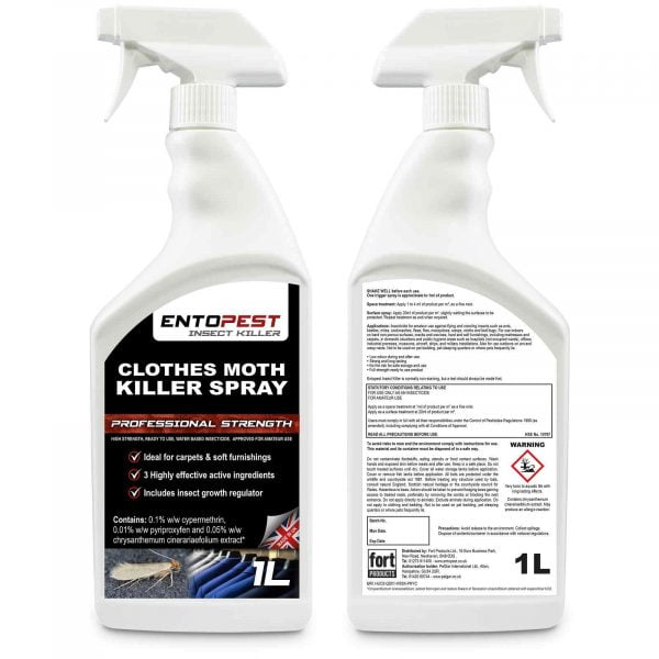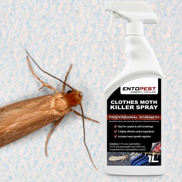 Entopest Insect Killer Spray is ready for use water-based spray specifically designed to control common clothes moth (Tineola bisselliella), case-bearing clothes moth (Tinea pellionella) and pale-backed clothes moth (Monopis crocicapitella). Ideal for spot treatments within wardrobes, walls, on the carpet and other non-clothes materials associated with moth activity.